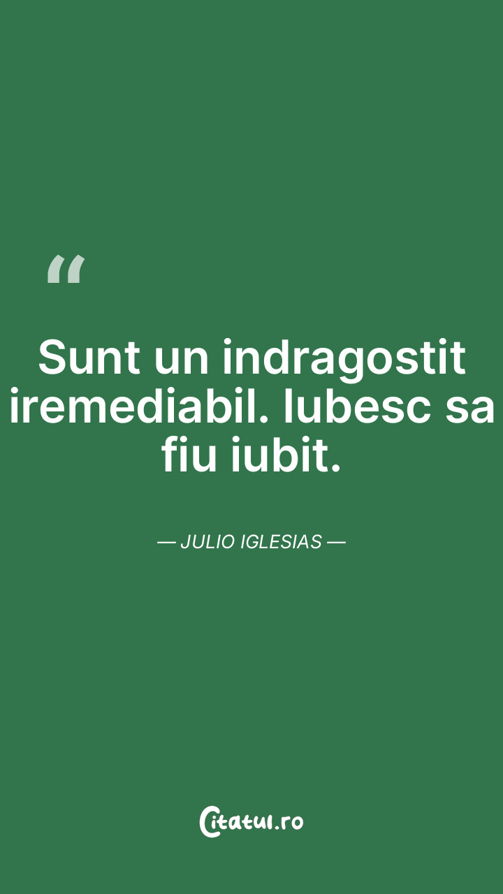 Sunt un indragostit iremediabil. Iubesc sa fiu iubit. Julio Iglesias