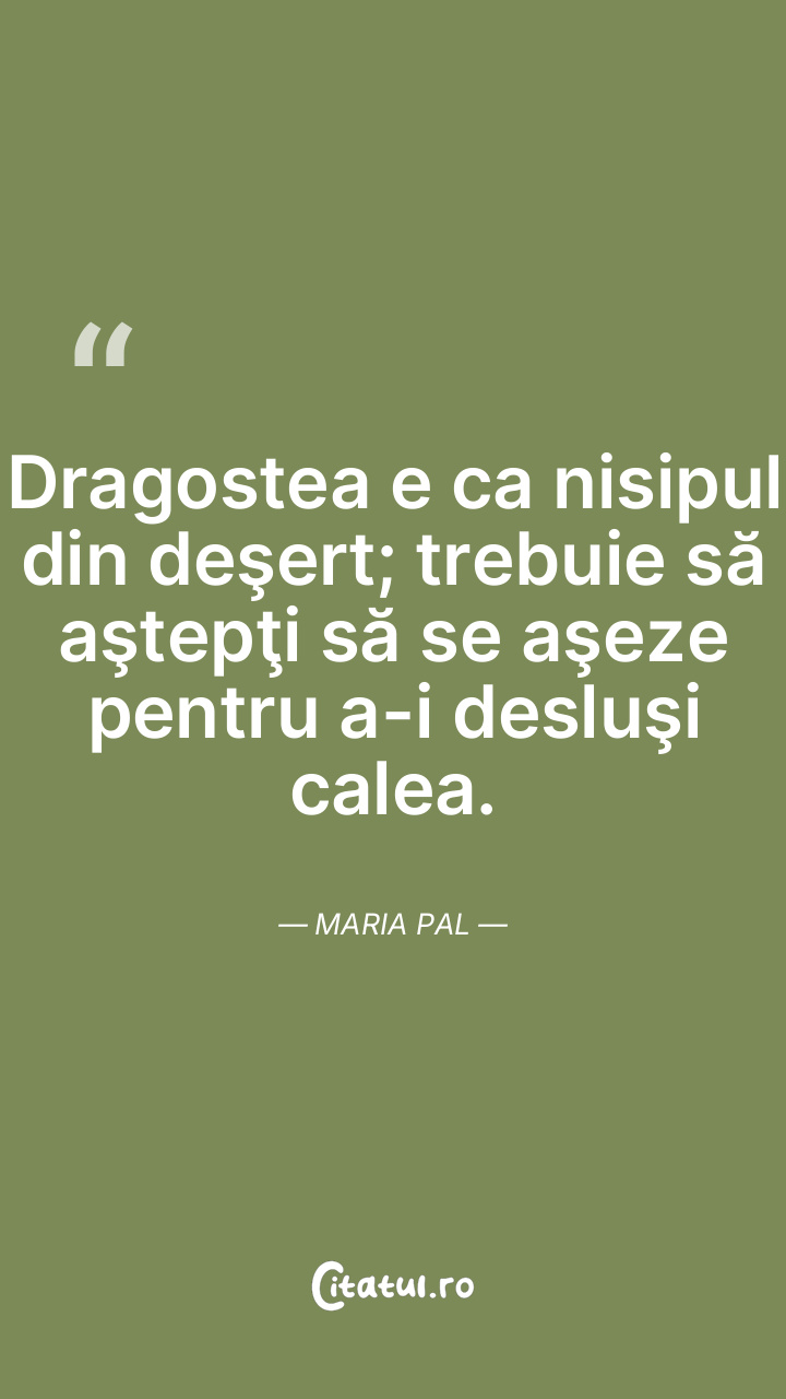 Dragostea e ca nisipul din deşert; trebuie să aştepţi să se aşeze pentru a-i desluşi calea. Maria Pal