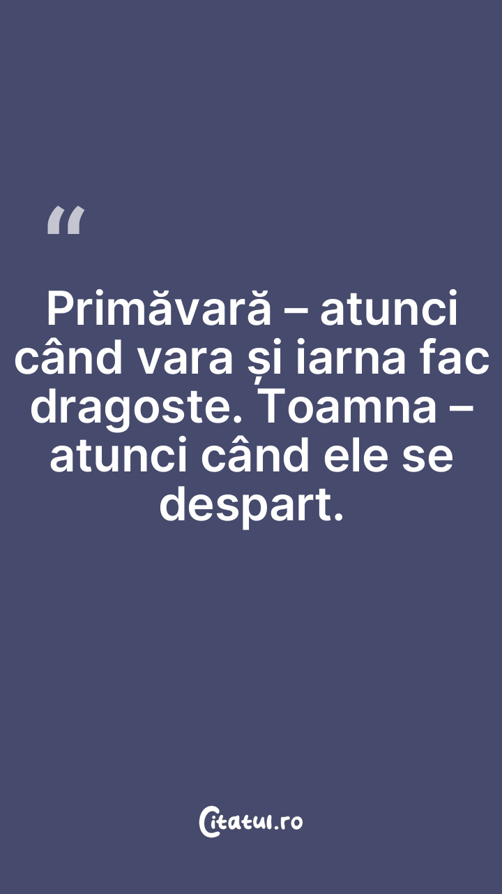 Primăvară – atunci când vara și iarna fac dragoste. Toamna – atunci când ele se despart.