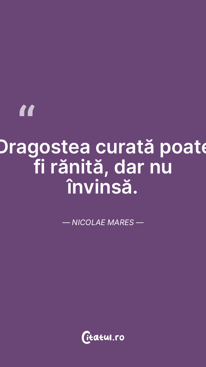 Dragostea curată poate fi rănită, dar nu învinsă. Nicolae Mares