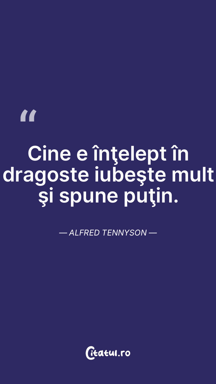 Cine e înţelept în dragoste iubeşte mult şi spune puţin. Alfred Tennyson