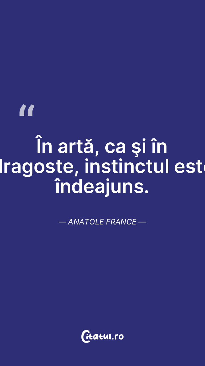În artă, ca şi în dragoste, instinctul este îndeajuns. Anatole France