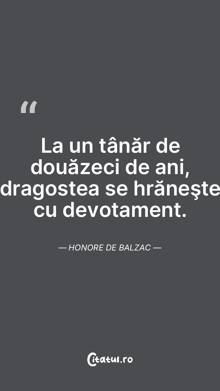 La un tânăr de douăzeci de ani, dragostea se hrăneşte cu devotament. Honore de Balzac
