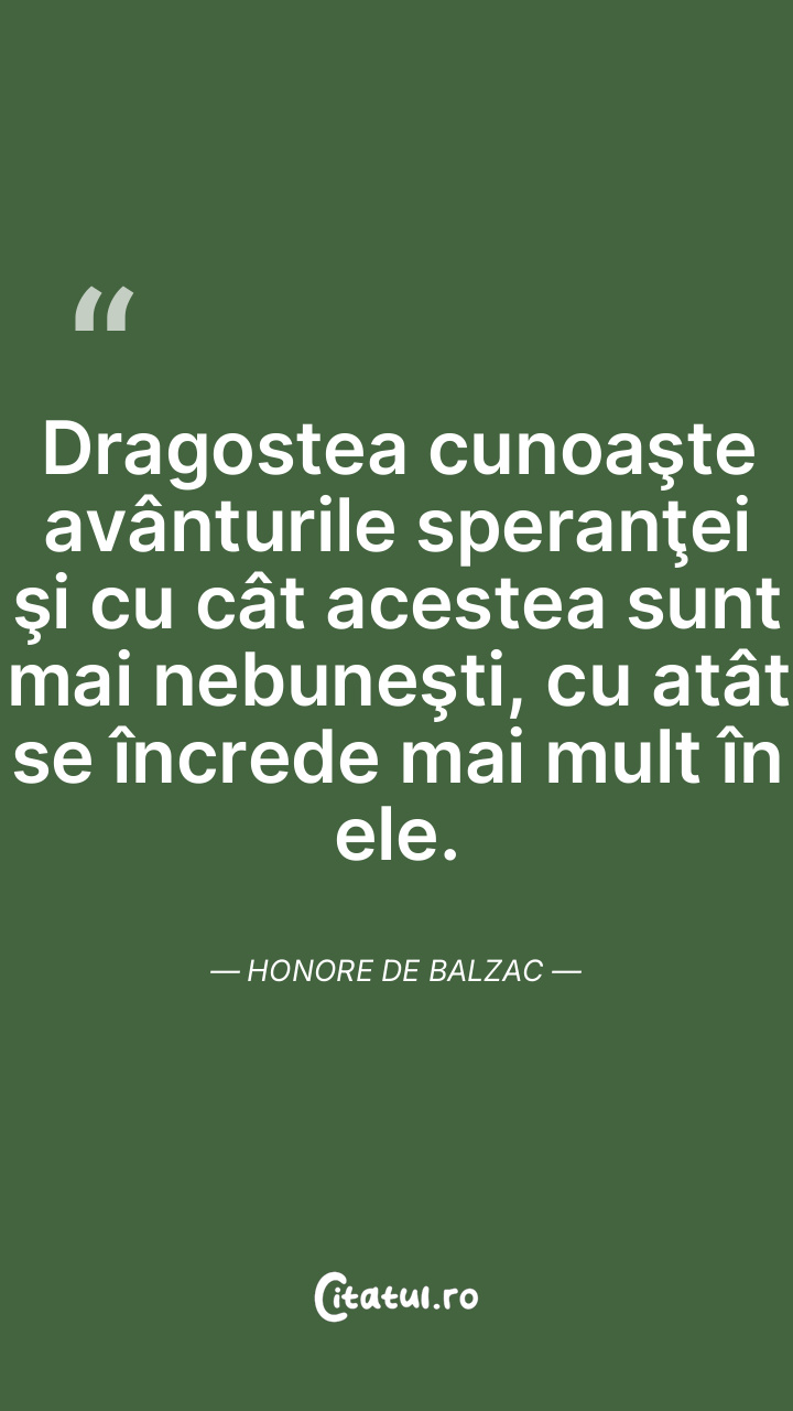 Dragostea cunoaşte avânturile speranţei şi cu cât acestea sunt mai nebuneşti, cu atât se încrede mai mult în ele. Honore de Balzac