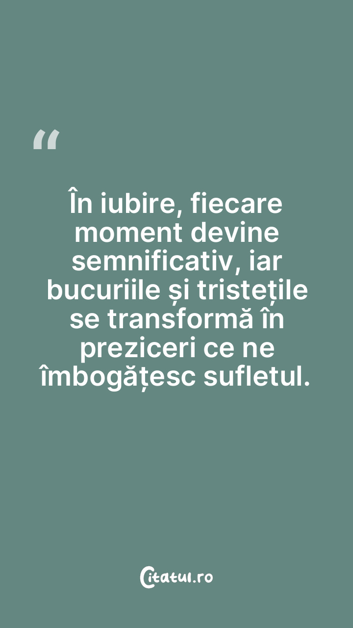 În iubire, fiecare moment devine semnificativ, iar bucuriile și tristețile se transformă în preziceri ce ne îmbogățesc sufletul.