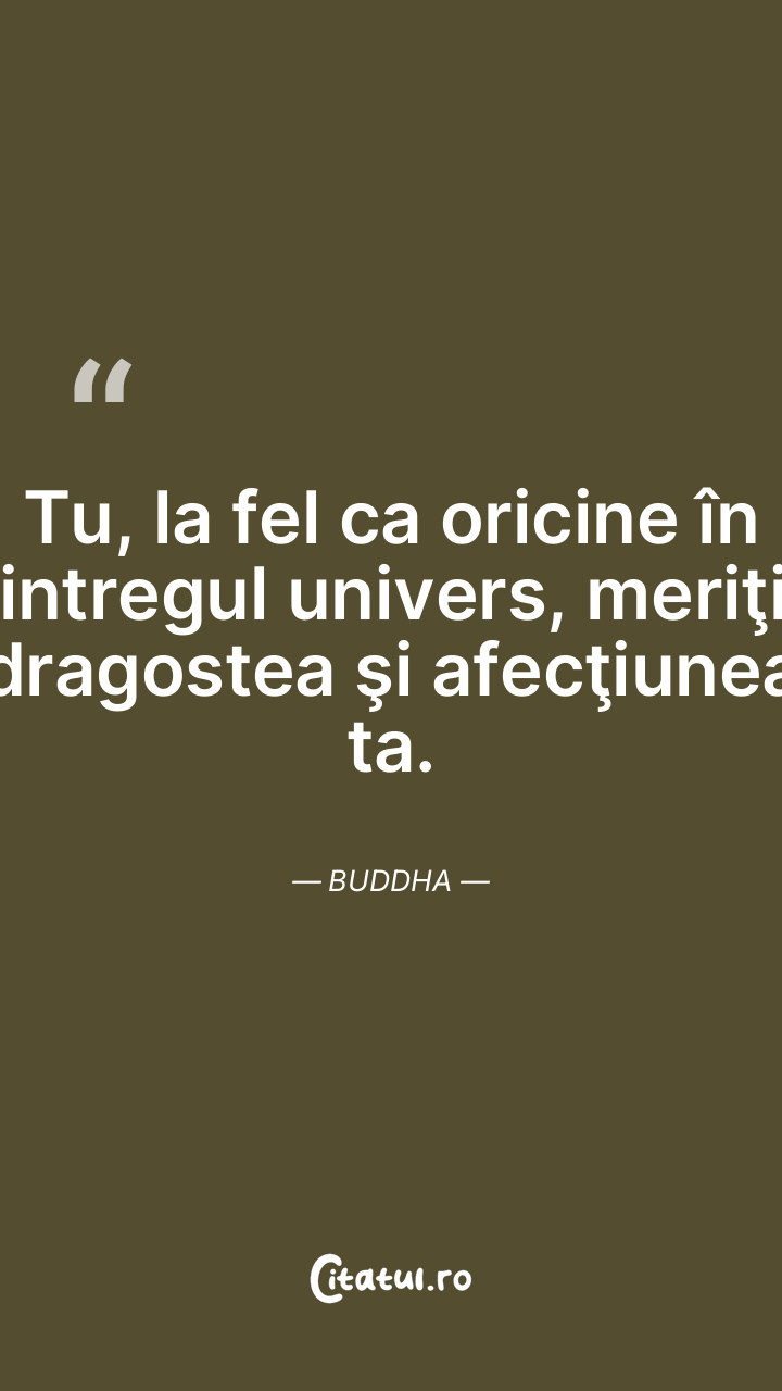 Tu, la fel ca oricine în intregul univers, meriţi dragostea şi afecţiunea ta. Buddha