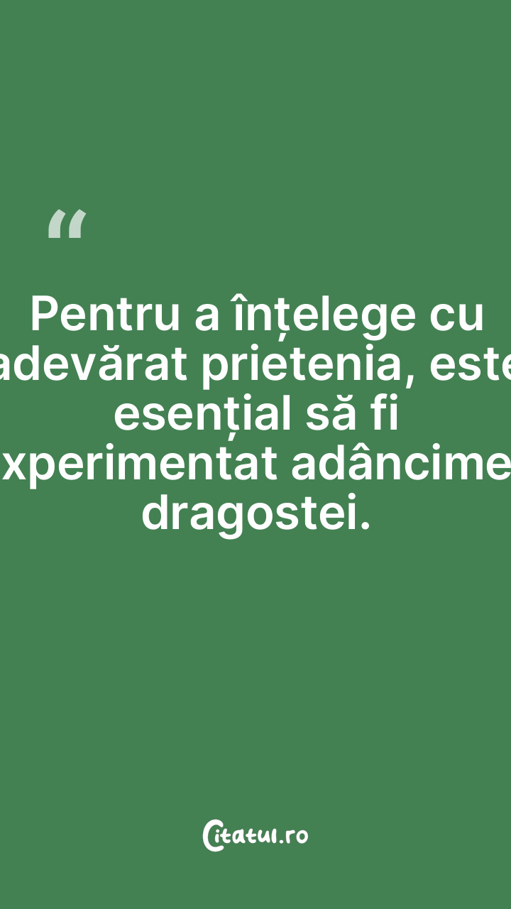 Pentru a înțelege cu adevărat prietenia, este esențial să fi experimentat adâncimea dragostei.