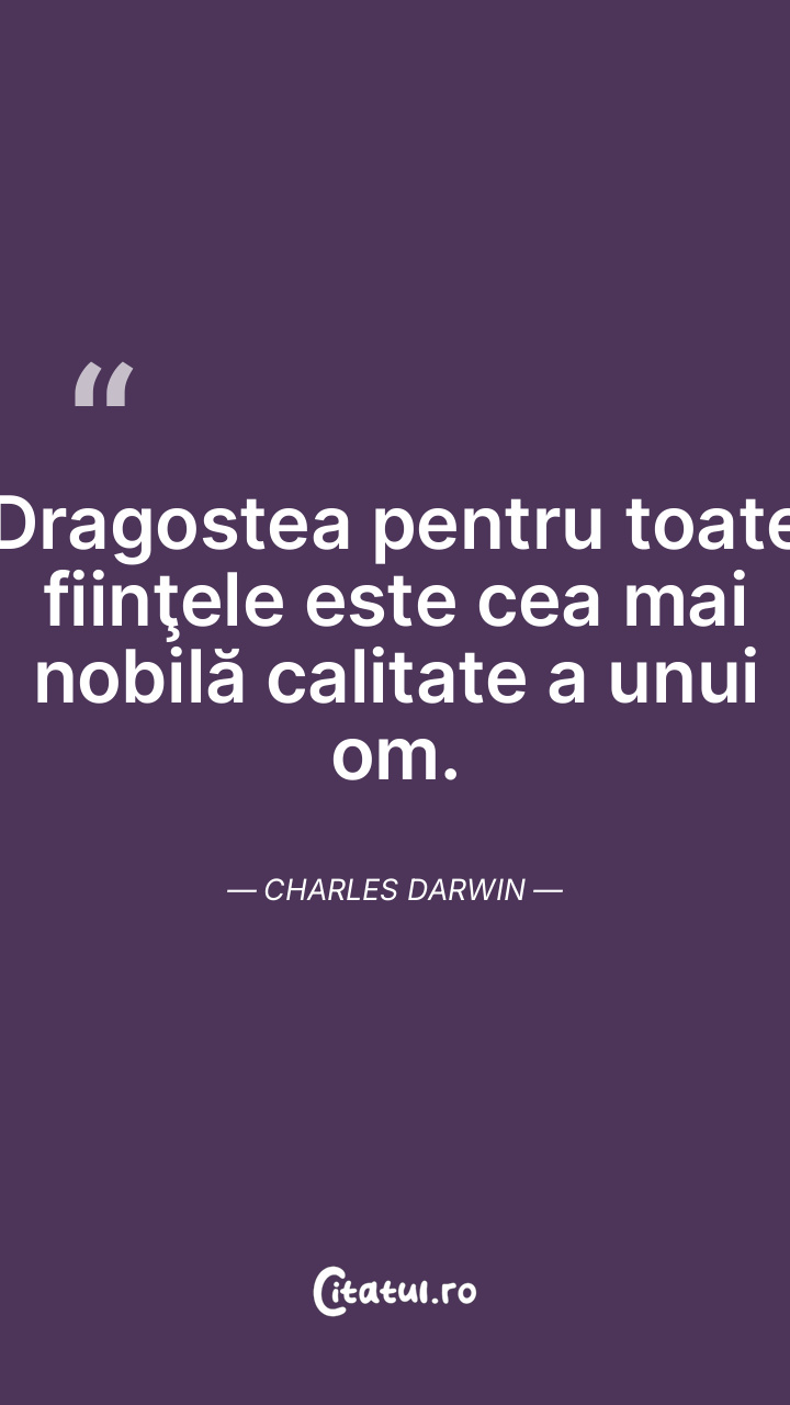 Dragostea pentru toate fiinţele este cea mai nobilă calitate a unui om. Charles Darwin
