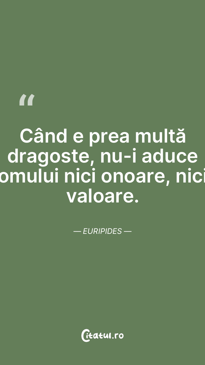 Când e prea multă dragoste, nu-i aduce omului nici onoare, nici valoare. Euripides