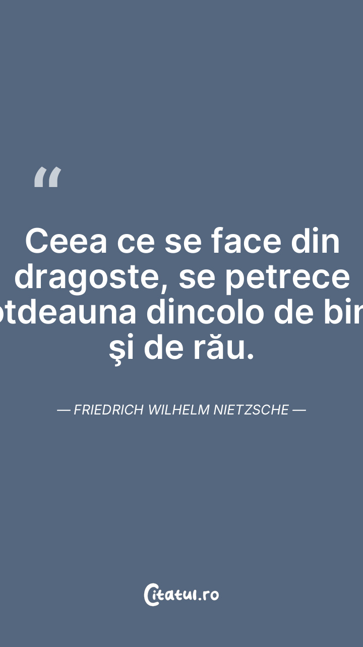 Ceea ce se face din dragoste, se petrece totdeauna dincolo de bine şi de rău. Friedrich Wilhelm Nietzsche
