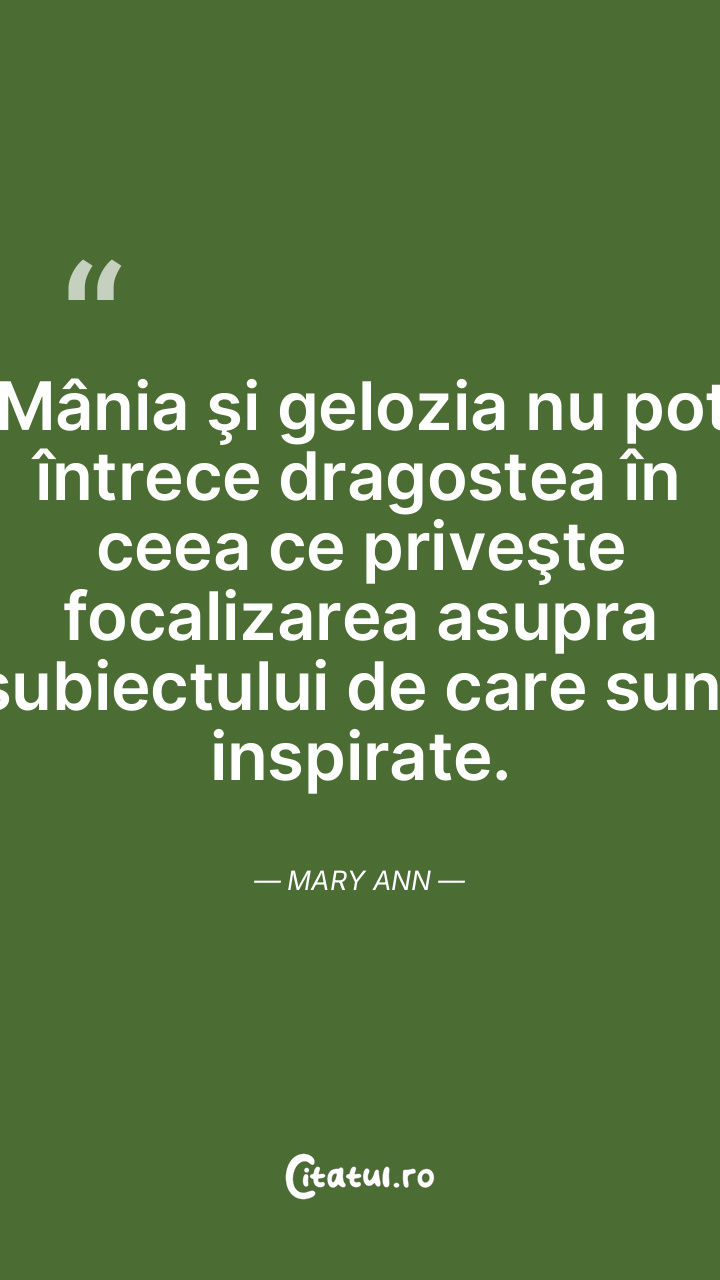 Mânia şi gelozia nu pot întrece dragostea în ceea ce priveşte focalizarea asupra subiectului de care sunt inspirate. Mary Ann