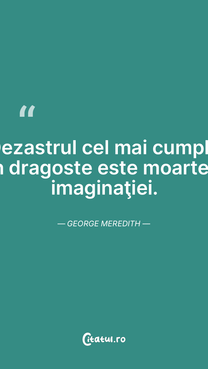 Dezastrul cel mai cumplit în dragoste este moartea imaginaţiei. George Meredith