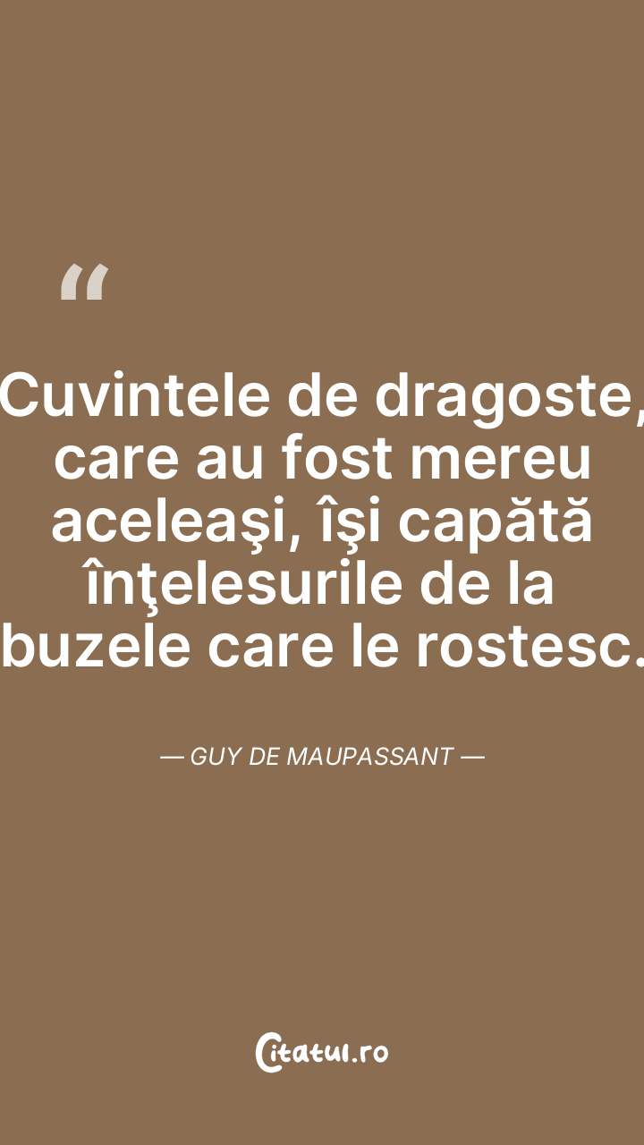 Cuvintele de dragoste, care au fost mereu aceleaşi, îşi capătă înţelesurile de la buzele care le rostesc. Guy de Maupassant