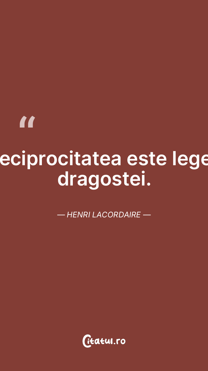 Reciprocitatea este legea dragostei. Henri Lacorda...