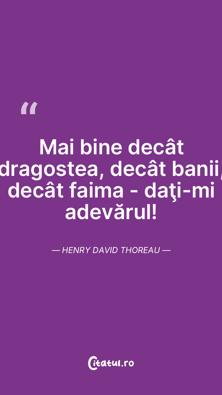 Mai bine decât dragostea, decât banii, decât faima - daţi-mi adevărul! Henry David Thoreau