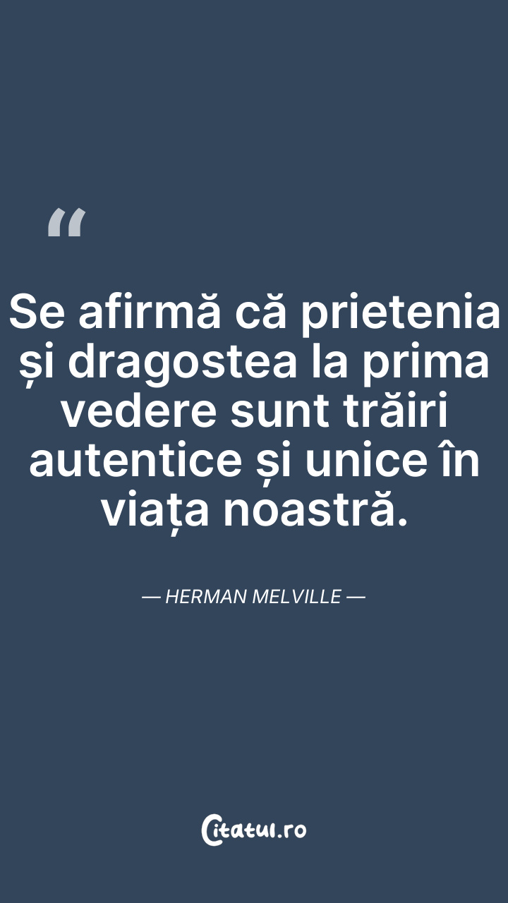Se afirmă că prietenia și dragostea la prima vedere sunt trăiri autentice și unice în viața noastră. Herman Melville