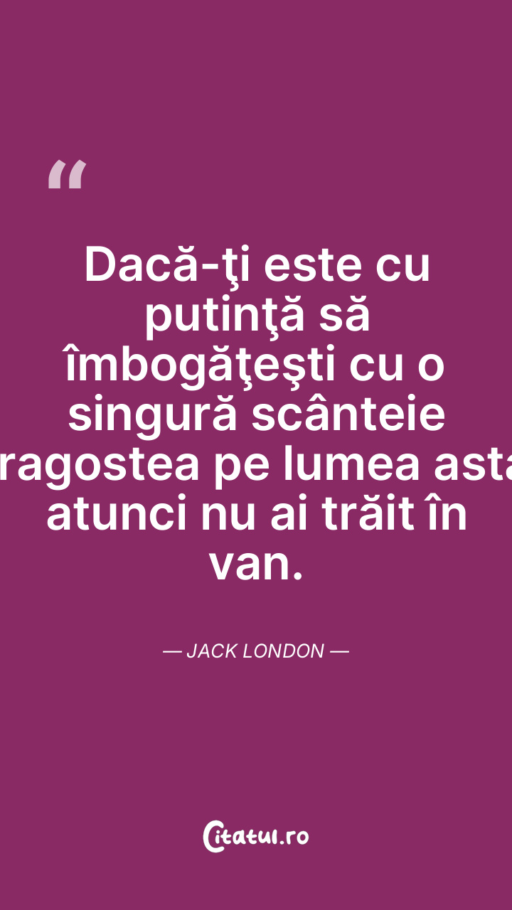 Dacă-ţi este cu putinţă să îmbogăţeşti cu o singură scânteie dragostea pe lumea asta, atunci nu ai trăit în van. Jack London