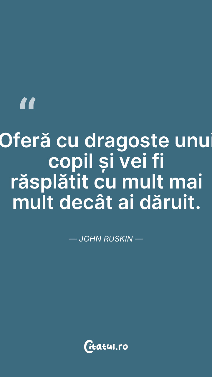Oferă cu dragoste unui copil și vei fi răsplătit cu mult mai mult decât ai dăruit. John Ruskin