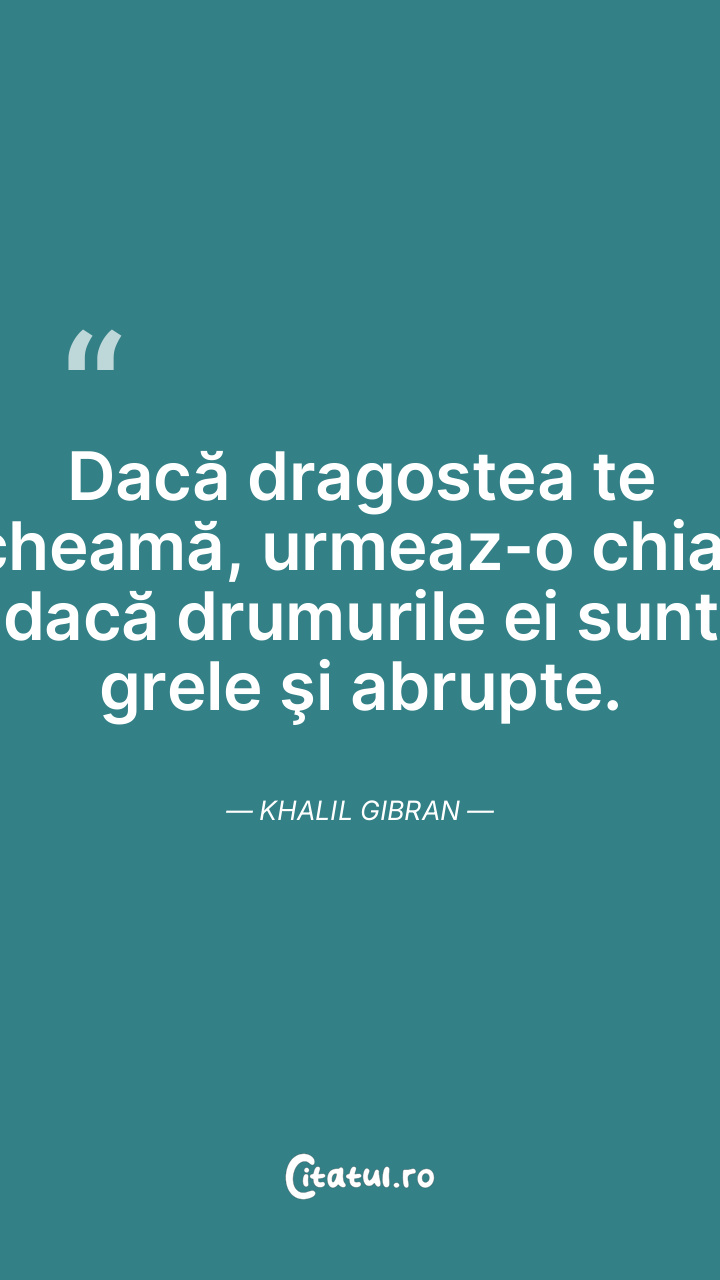 Dacă dragostea te cheamă, urmeaz-o chiar dacă drumurile ei sunt grele şi abrupte. Khalil Gibran