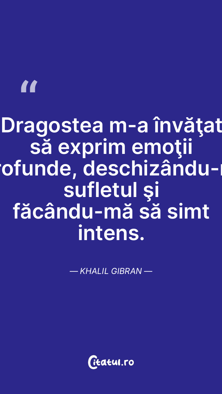 Dragostea m-a învăţat să exprim emoţii profunde, deschizându-mi sufletul şi făcându-mă să simt intens. Khalil Gibran