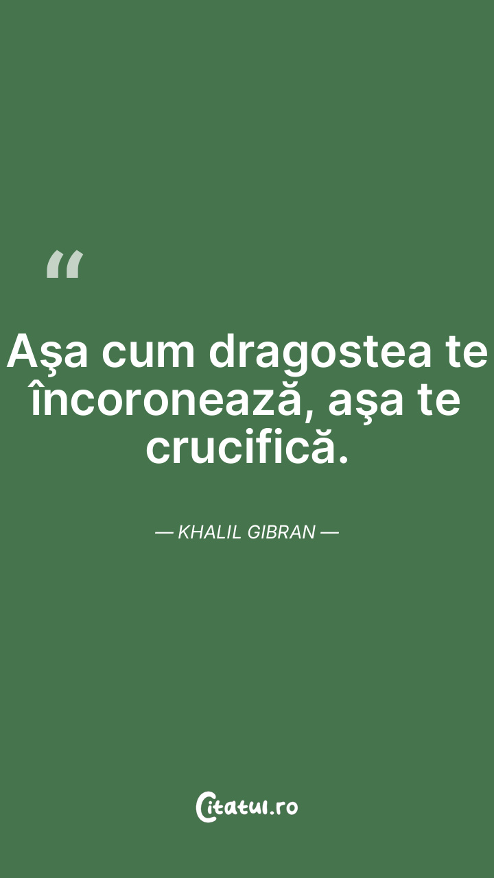 Aşa cum dragostea te încoronează, aşa te crucifică. Khalil Gibran