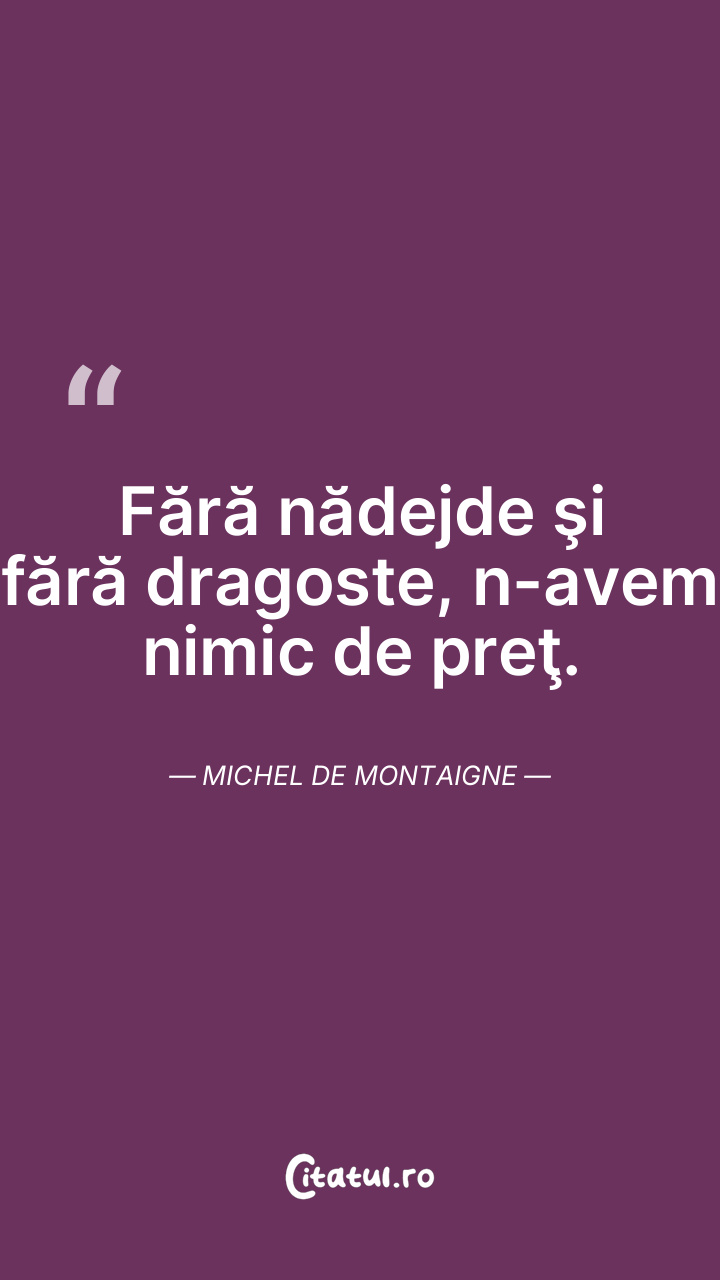 Fără nădejde şi fără dragoste, n-avem nimic de preţ. Michel de Montaigne