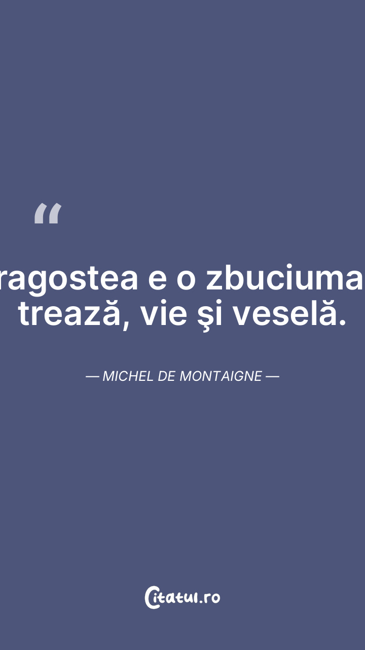 Dragostea e o zbuciumare trează, vie şi veselă. Michel de Montaigne