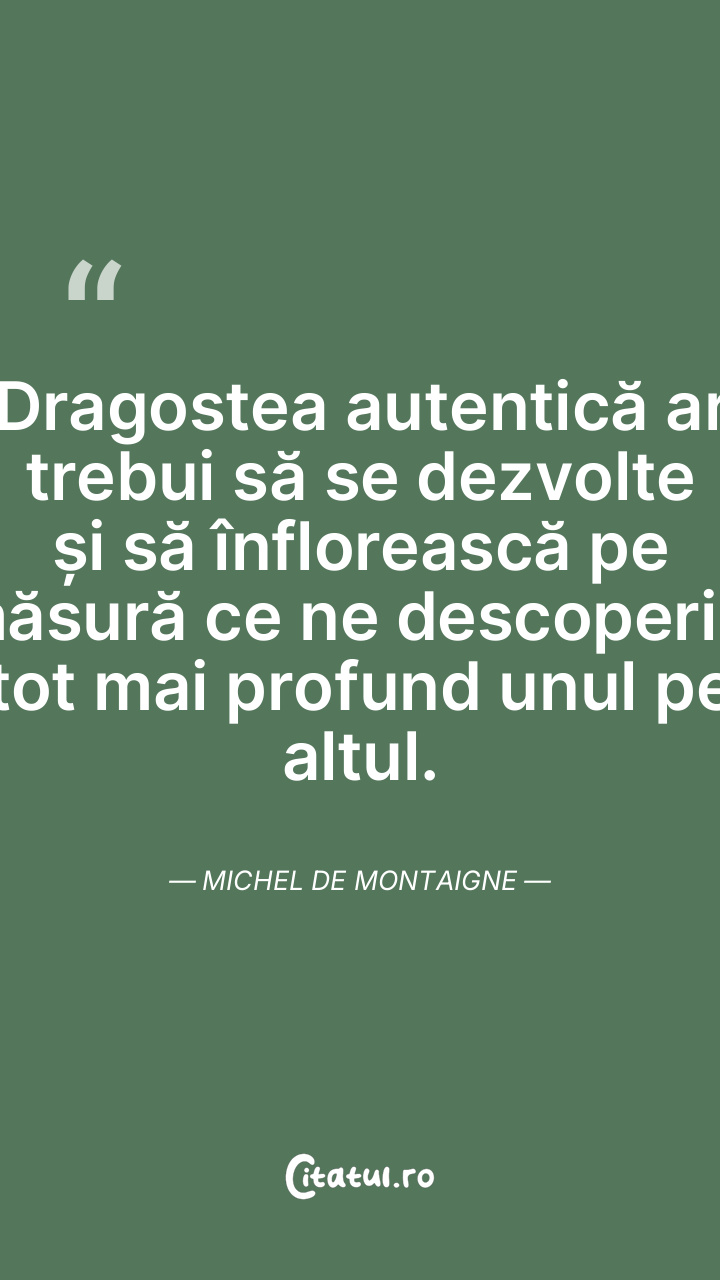 Dragostea autentică ar trebui să se dezvolte și să înflorească pe măsură ce ne descoperim tot mai profund unul pe altul. Michel de Montaigne