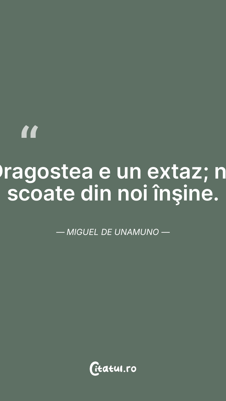 Dragostea e un extaz; ne scoate din noi înşine. Miguel de Unamuno