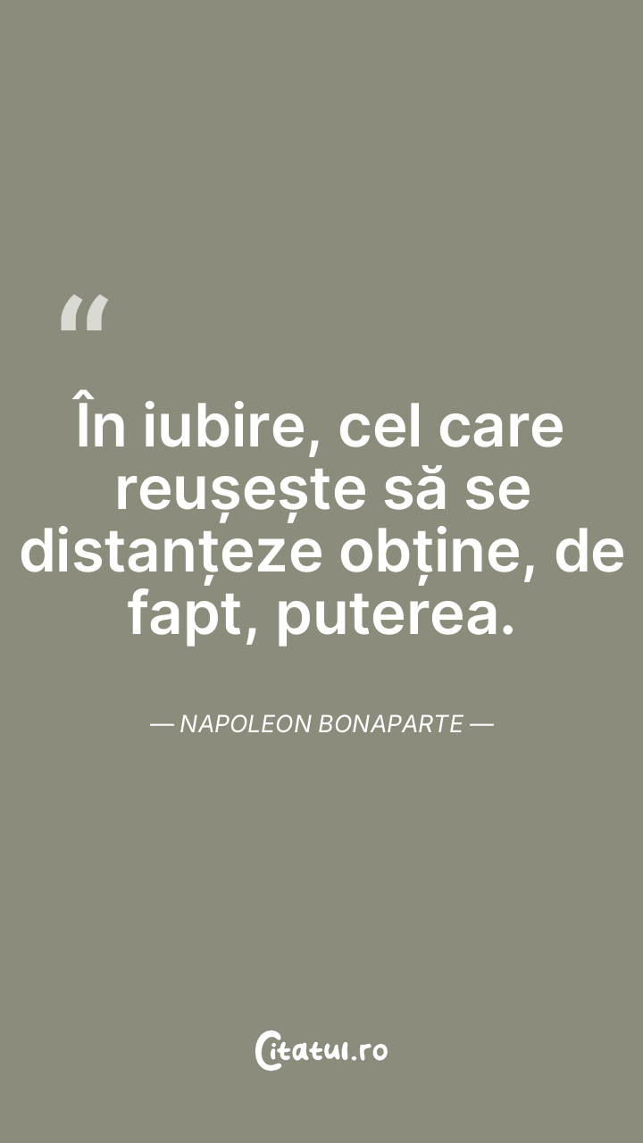 În iubire, cel care reușește să se distanțeze obține, de fapt, puterea. Napoleon Bonaparte
