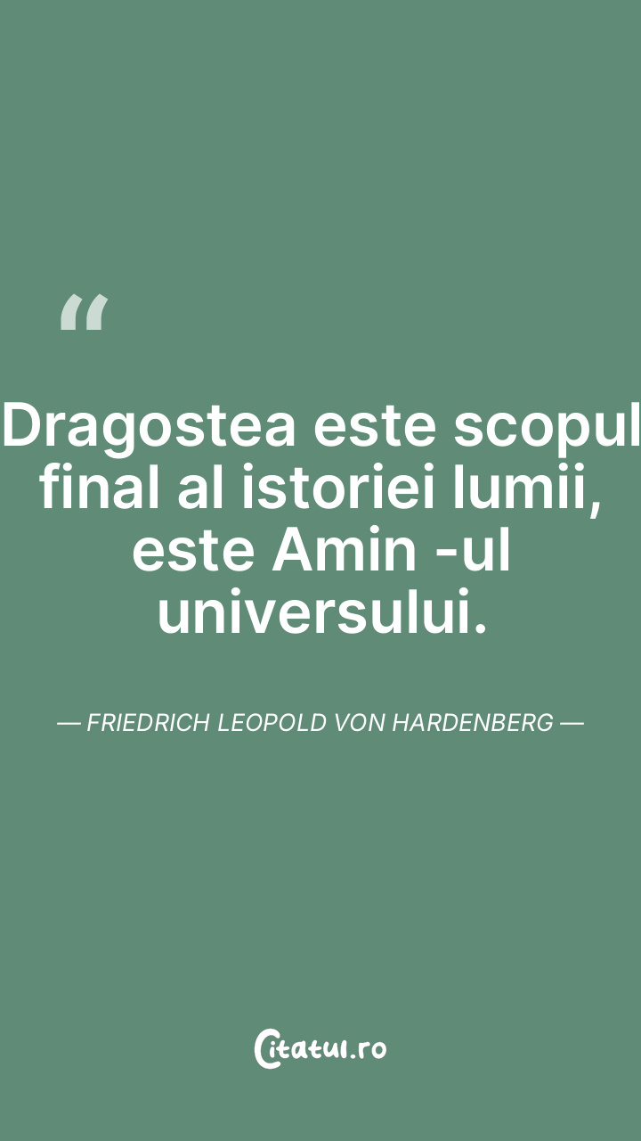 Dragostea este scopul final al istoriei lumii, este Amin -ul universului. Friedrich Leopold Von Hardenberg