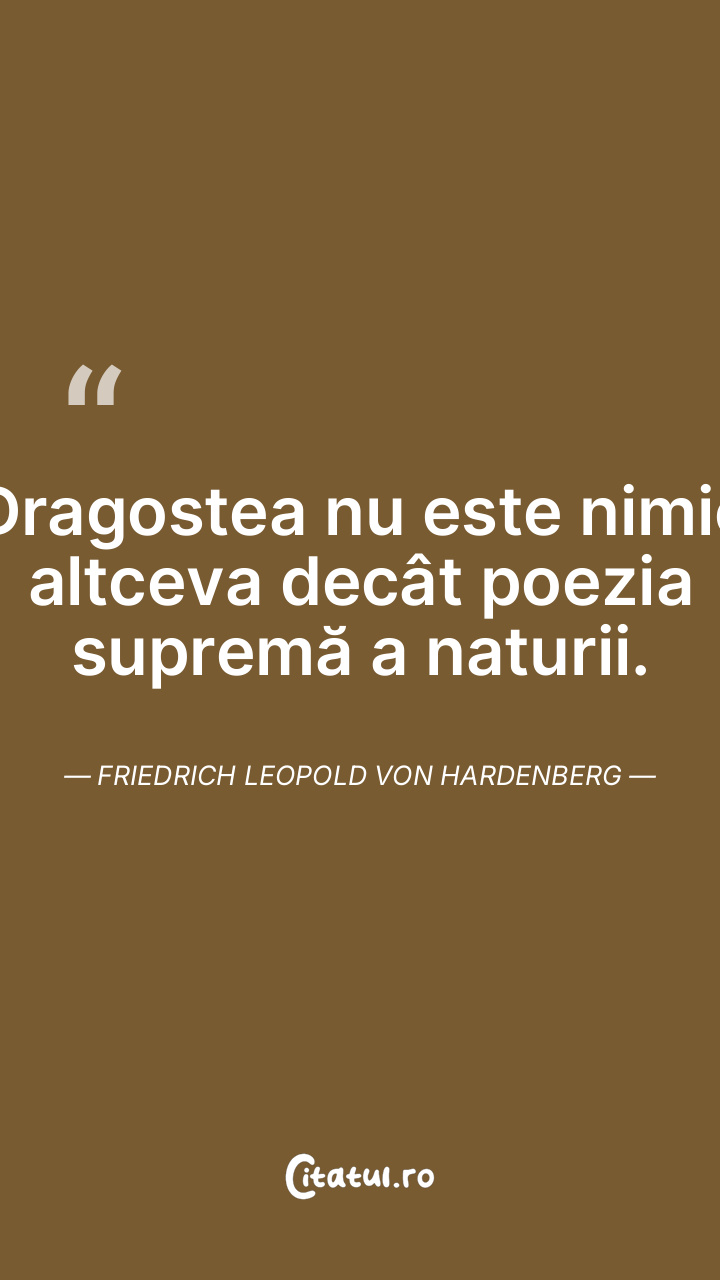 Dragostea nu este nimic altceva decât poezia supremă a naturii. Friedrich Leopold Von Hardenberg