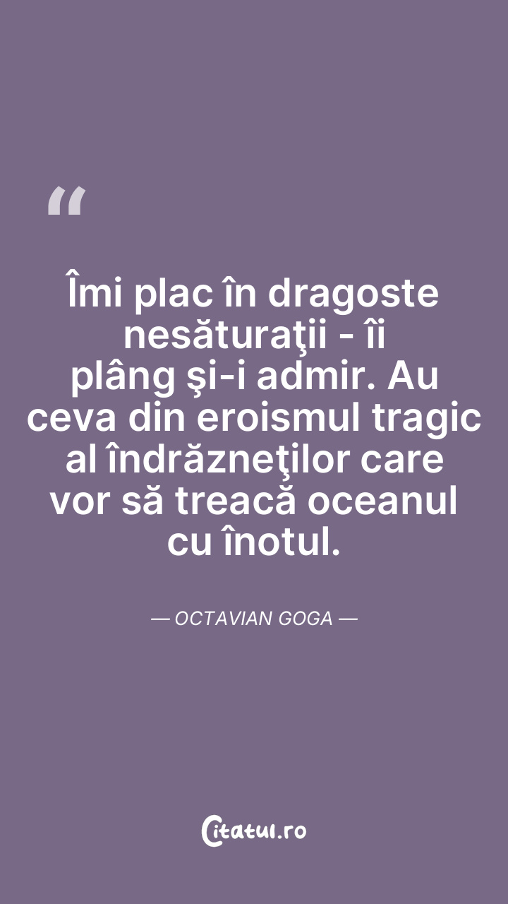 Îmi plac în dragoste nesăturaţii - îi plâng şi-i admir. Au ceva din eroismul tragic al îndrăzneţilor care vor să treacă oceanul cu înotul. Octavian Goga