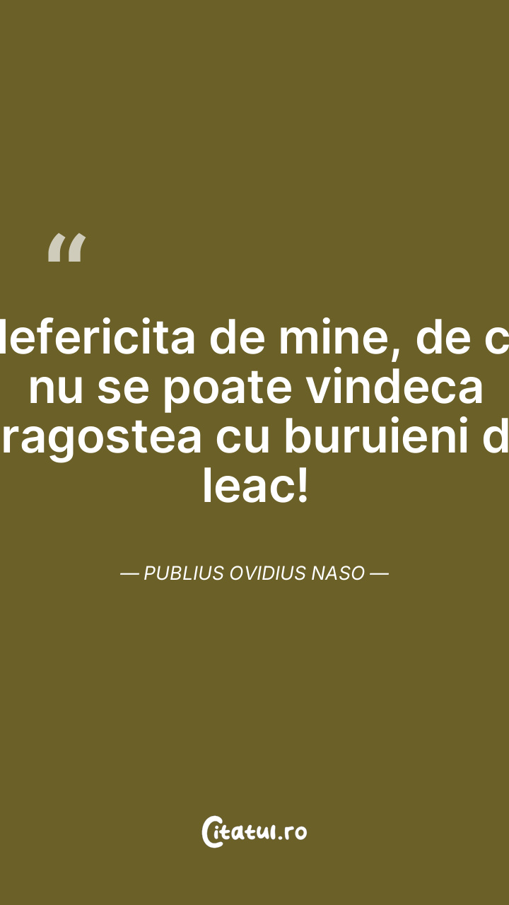 Nefericita de mine, de ce nu se poate vindeca dragostea cu buruieni de leac! Publius Ovidius Naso