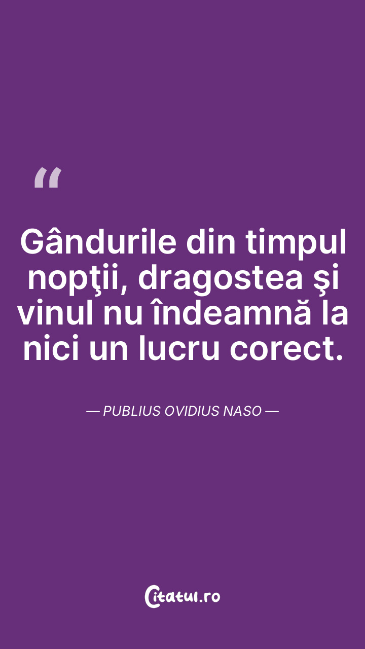 Gândurile din timpul nopţii, dragostea şi vinul nu îndeamnă la nici un lucru corect. Publius Ovidius Naso