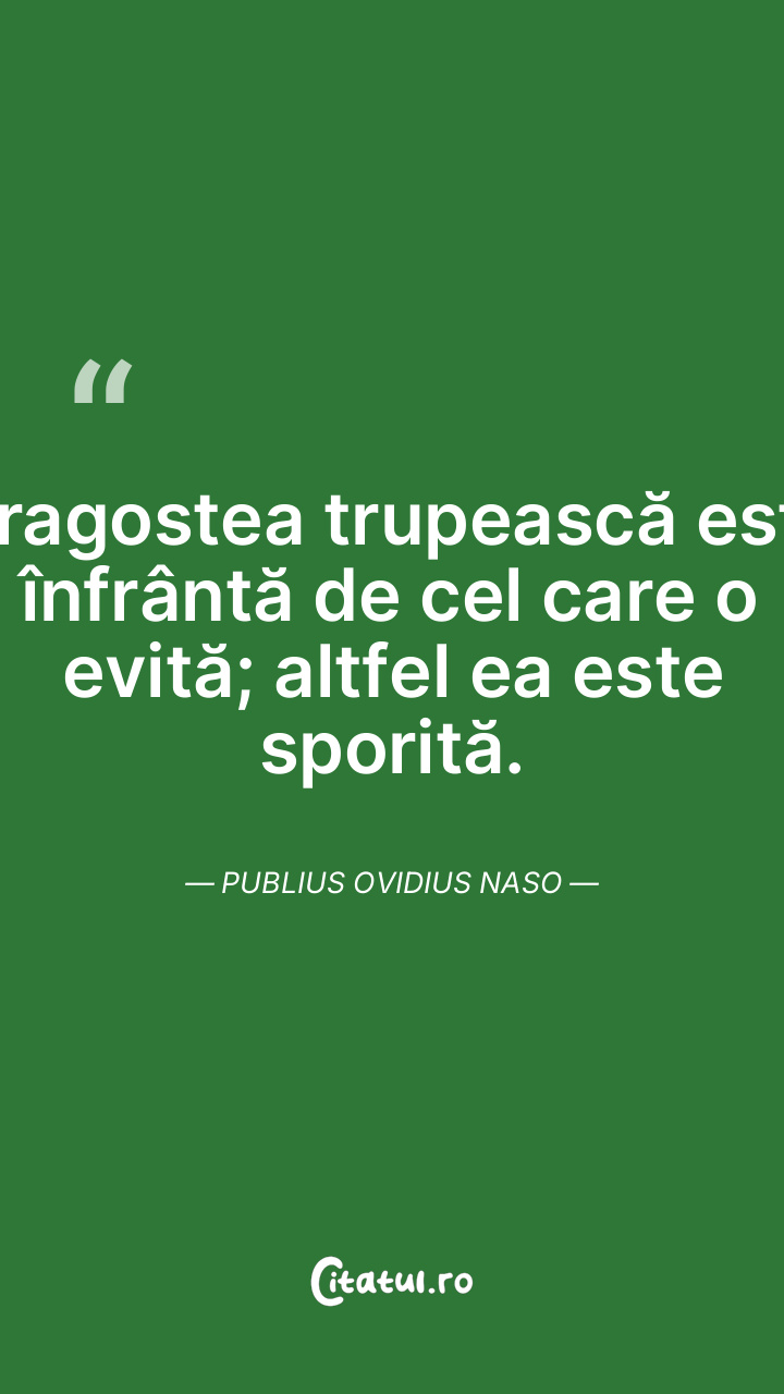 Dragostea trupească este înfrântă de cel care o evită; altfel ea este sporită. Publius Ovidius Naso