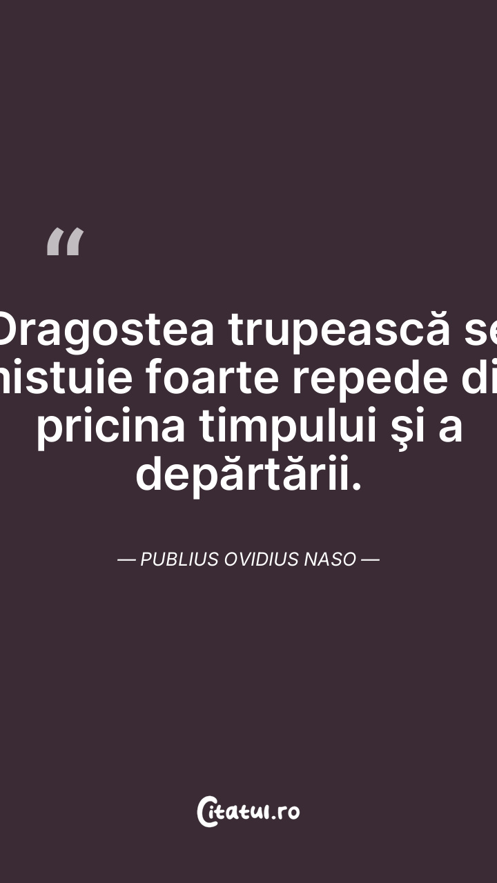Dragostea trupească se mistuie foarte repede din pricina timpului şi a depărtării. Publius Ovidius Naso