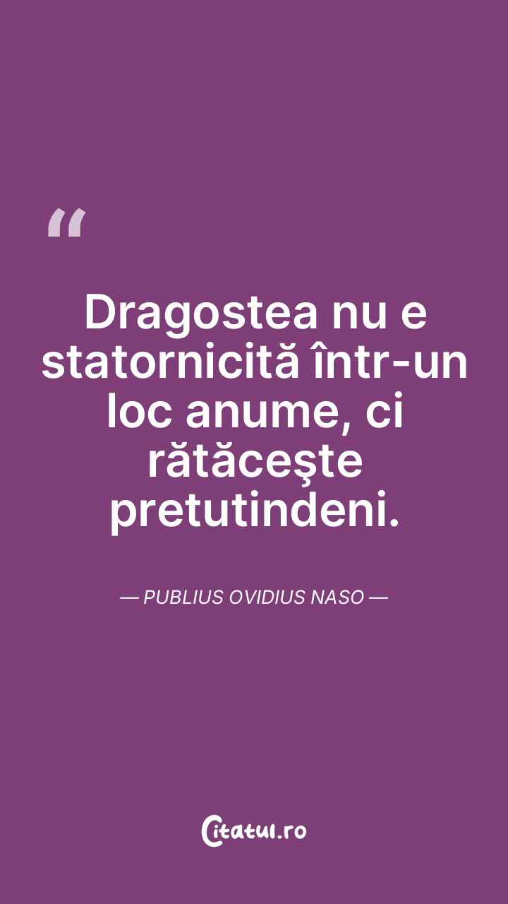 Dragostea nu e statornicită într-un loc anume, ci rătăceşte pretutindeni. Publius Ovidius Naso