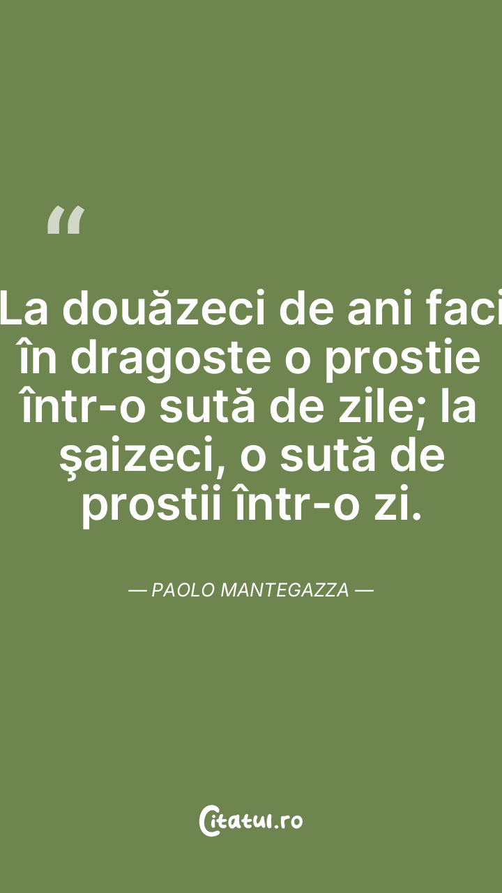 La douăzeci de ani faci în dragoste o prostie într-o sută de zile; la şaizeci, o sută de prostii într-o zi. Paolo Mantegazza