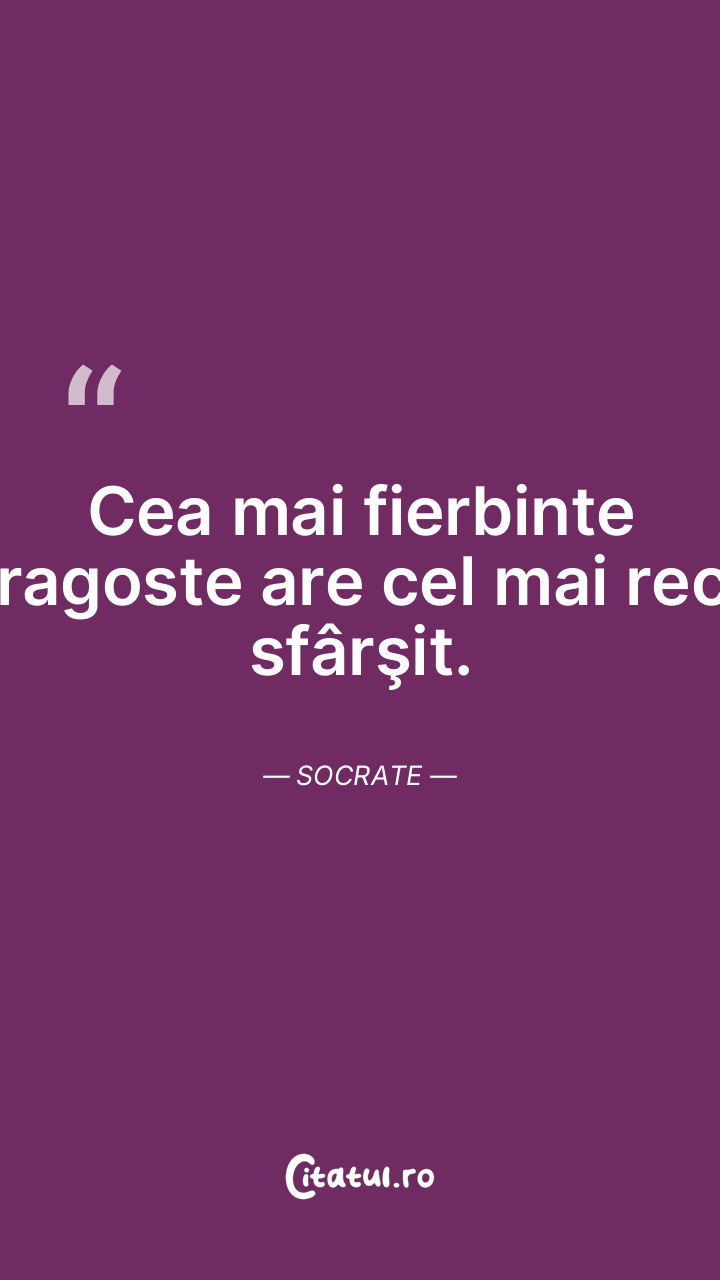 Cea mai fierbinte dragoste are cel mai rece sfârşit. Socrate