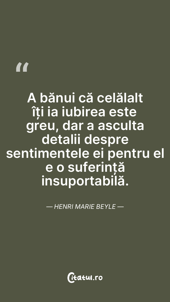 A bănui că celălalt îți ia iubirea este greu, dar a asculta detalii despre sentimentele ei pentru el e o suferință insuportabilă. Henri Marie Beyle