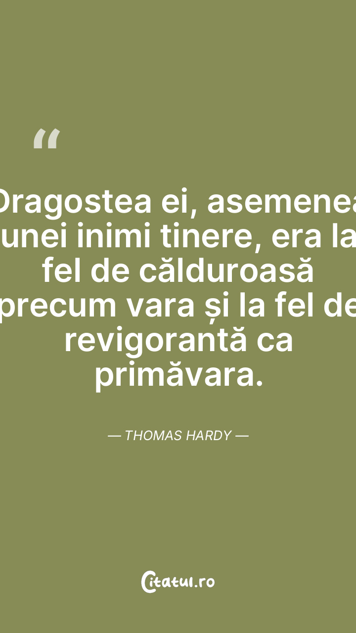 Dragostea ei, asemenea unei inimi tinere, era la fel de călduroasă precum vara și la fel de revigorantă ca primăvara. Thomas Hardy