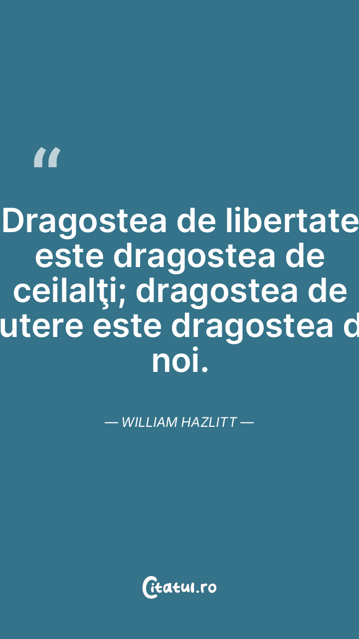 Dragostea de libertate este dragostea de ceilalţi; dragostea de putere este dragostea de noi. William Hazlitt