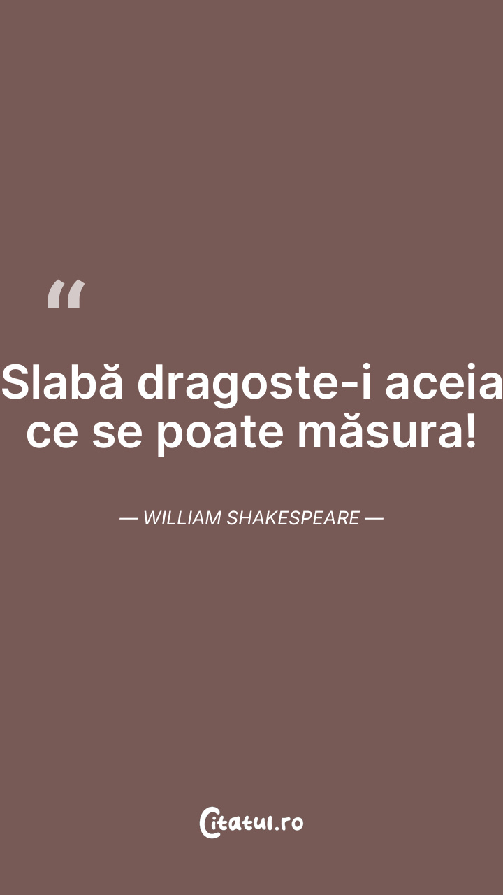 Slabă dragoste-i aceia ce se poate măsura! William Shakespeare