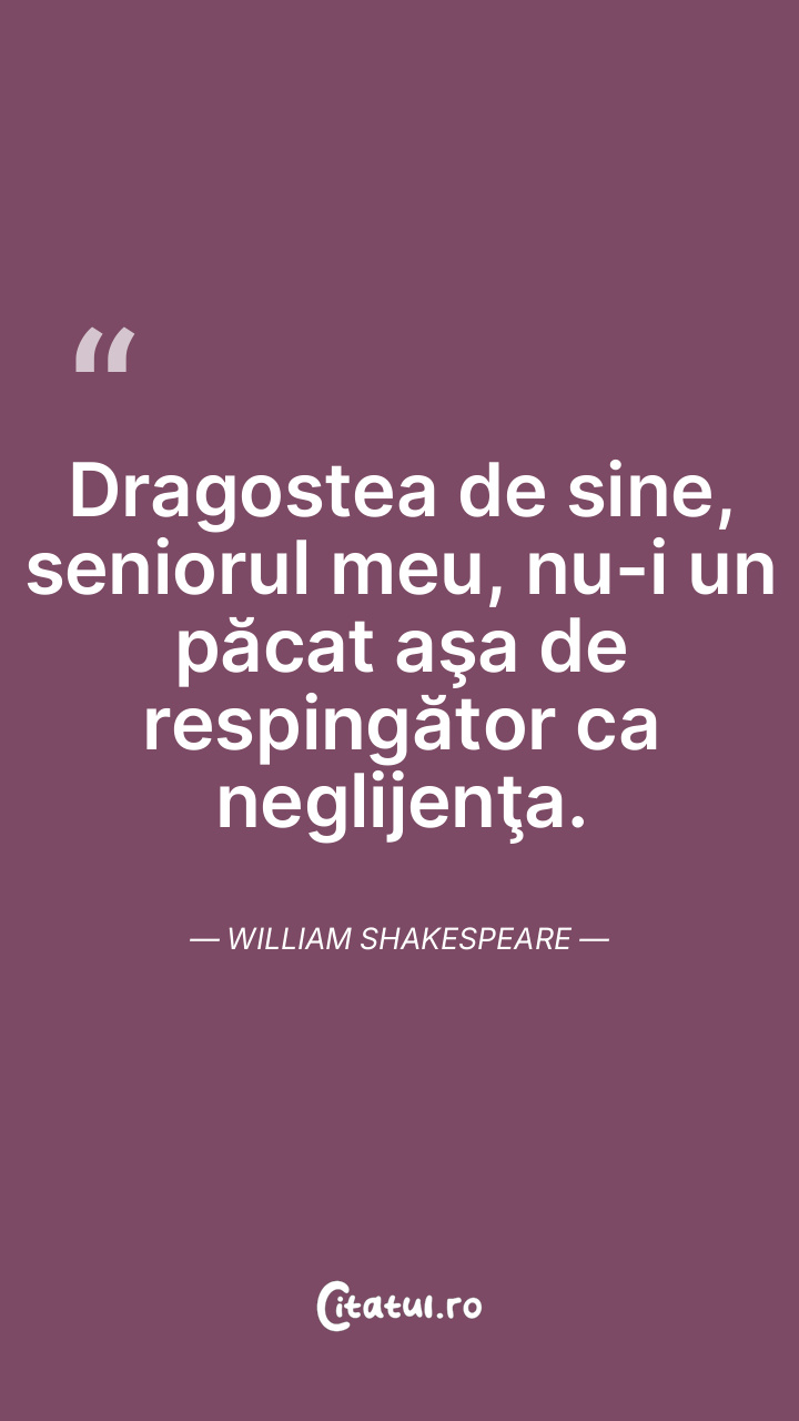 Dragostea de sine, seniorul meu, nu-i un păcat aşa de respingător ca neglijenţa. William Shakespeare