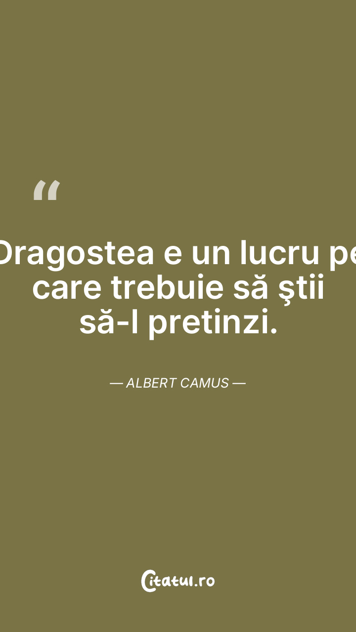 Dragostea e un lucru pe care trebuie să ştii să-l pretinzi. Albert Camus