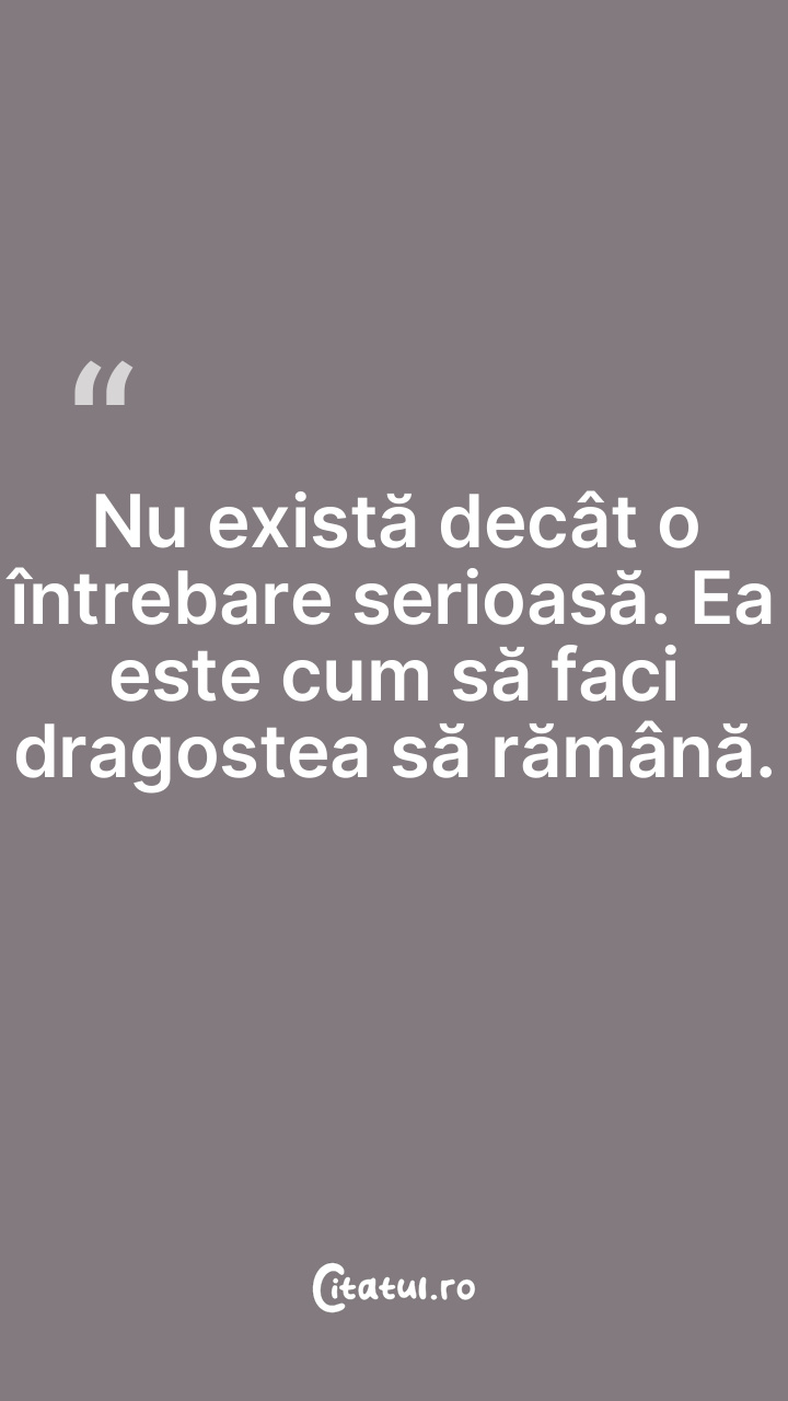 Nu există decât o întrebare serioasă. Ea este cum să faci dragostea să rămână.