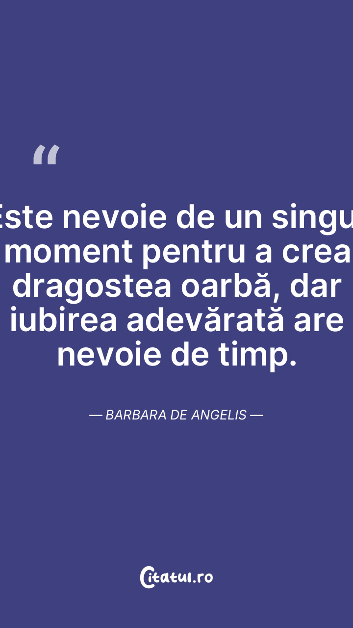 Este nevoie de un singur moment pentru a crea dragostea oarbă, dar iubirea adevărată are nevoie de timp. Barbara De Angelis
