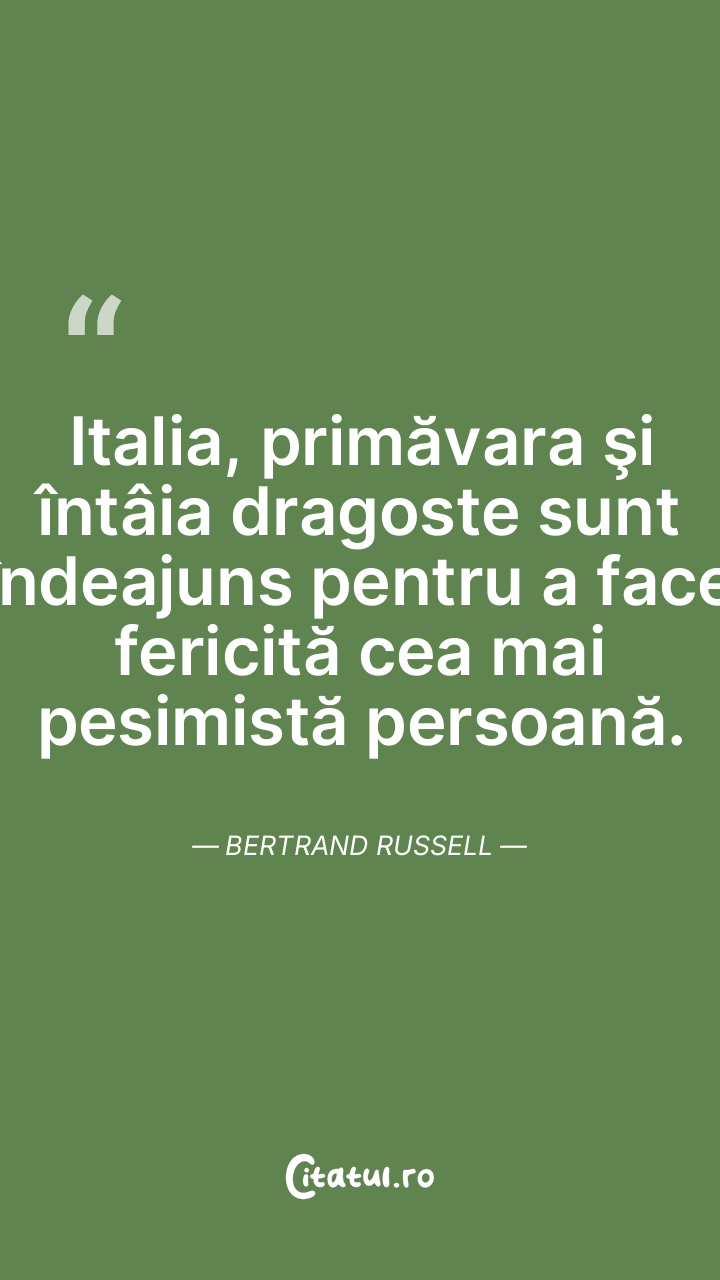 Italia, primăvara şi întâia dragoste sunt îndeajuns pentru a face fericită cea mai pesimistă persoană. Bertrand Russell