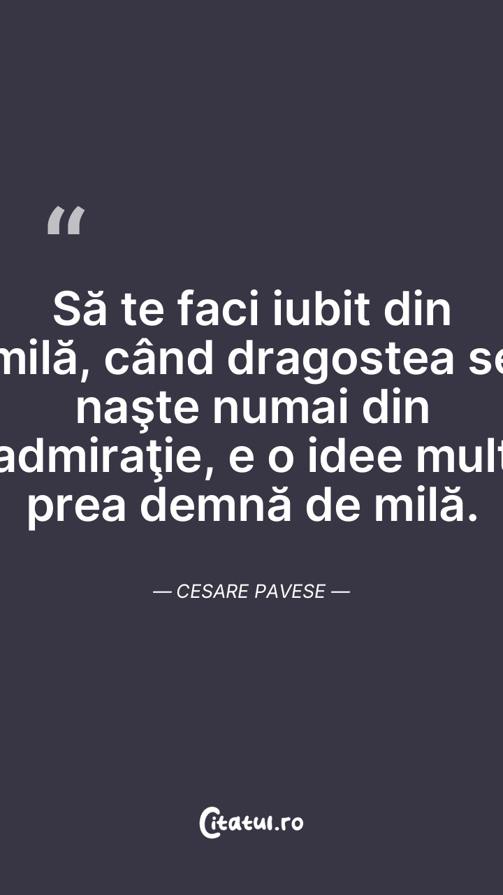 Să te faci iubit din milă, când dragostea se naşte numai din admiraţie, e o idee mult prea demnă de milă. Cesare Pavese